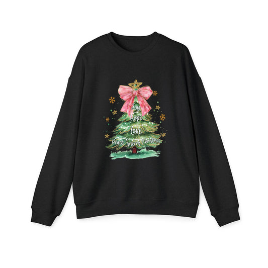 Joy Hope Peace Love Christmas Tree Bow Women's Drop Shoulder Sweatshirt